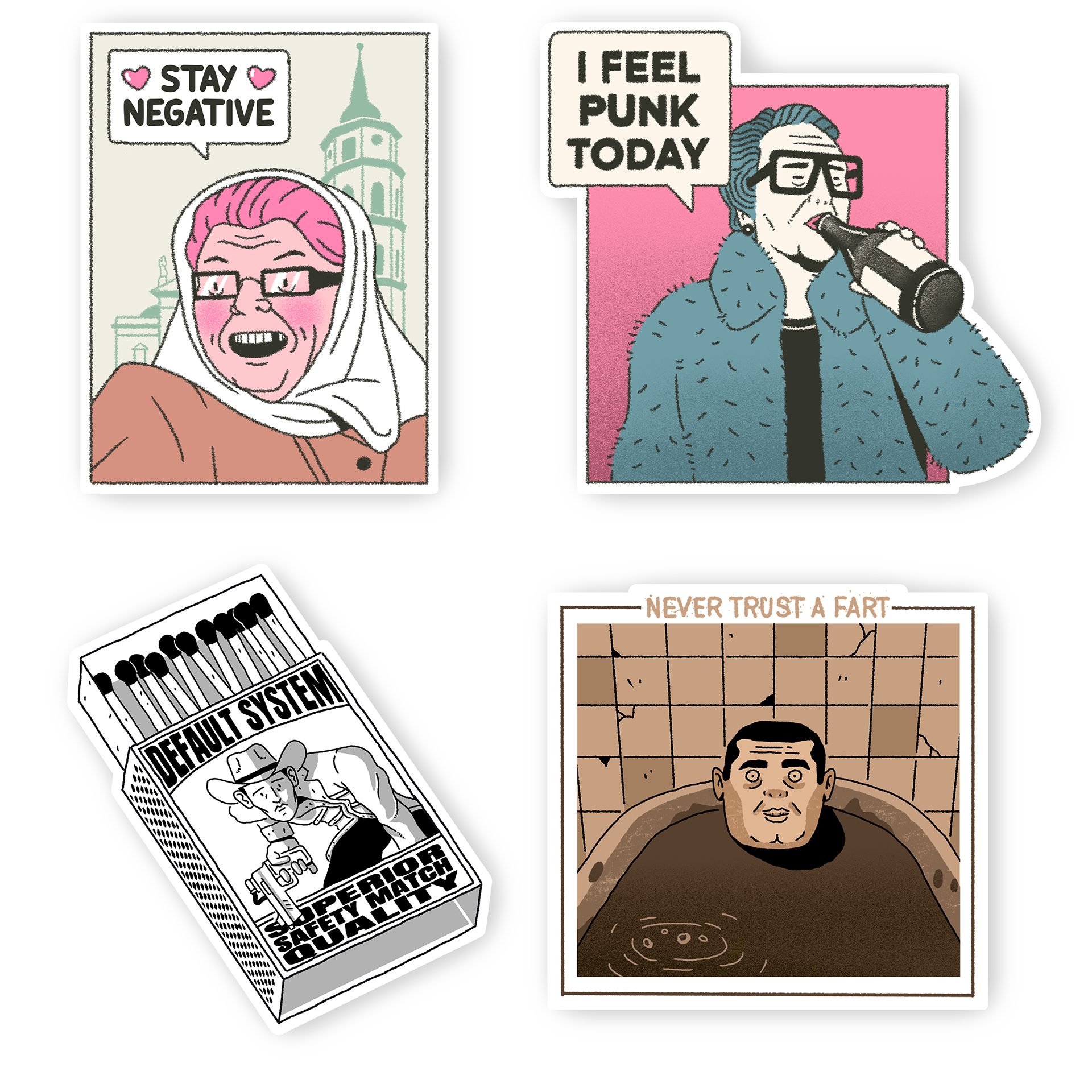 Sticker designs made for the 'Default System' store.